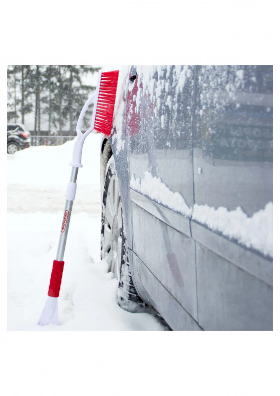 Щетка автомобильная для снега со скребком телескопическая 90-120 см SKYWAY / Щетка от снега для автомобиля со скребком и мягкой ручкой S07801015 - 1 шт