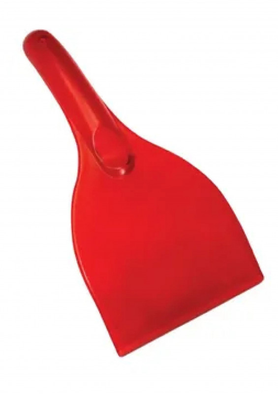 Компактный скребок красного цвета для очищения наледи и снега со стекол и зеркал автомобиля.