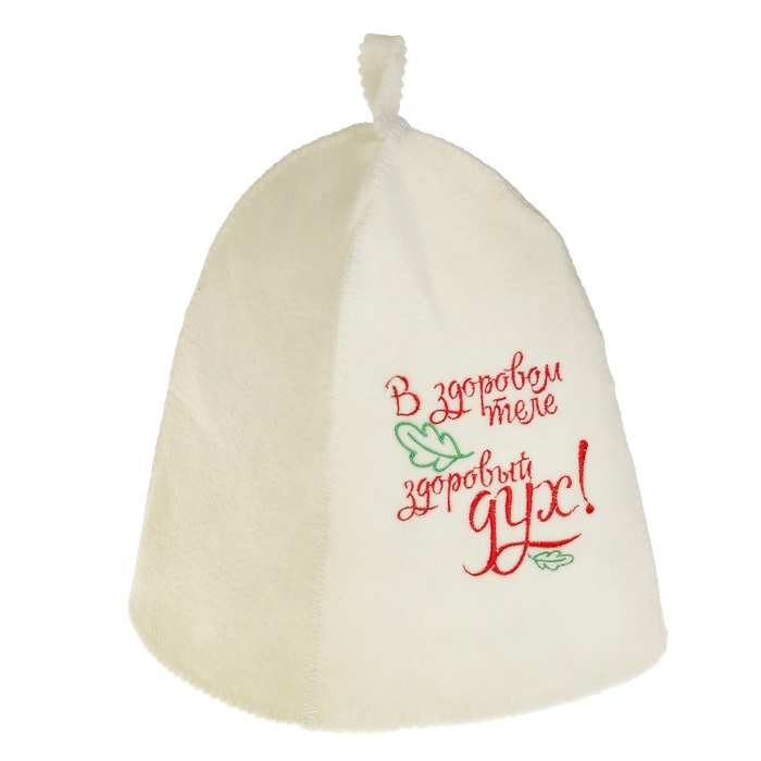 Шапка для бани с вышивкой первый сорт "В здоровом теле здоровый дух"
