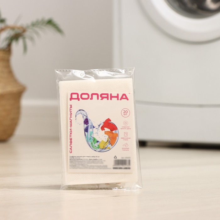 Салфетки препятствуют окрашиванию белья во время стирки. Благодаря ингредиентам, действующим по принципу магнита, избыток красителя в цветных вещах притягивается к салфетке. С ними можно безбоязненно стирать всё цветное белье одновременно.