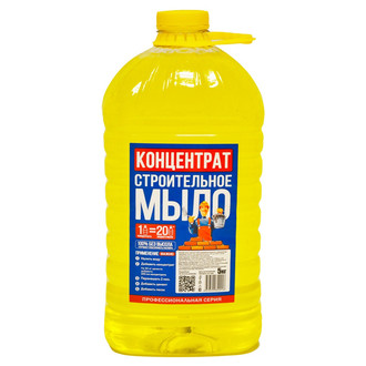 Мыло жидкое, строительное - это синтетическое моющее средство для снятия грязи, а также его широко используют для строительных нужд. Мыло добавляют к строительному раствору для повышения прочности и пластичности раствора, а также добавление мыла в бетон не вызывает его усадку. Мыло в бетонной смеси уменьшает количество цементных пустот, тем самым увеличивая прочность цемента. Использование мыла в строительном растворимые предоставляет следующие преимущества: повышается адгезия бетона к основанию, особенно к арматуре; повышается соединения между собой различных фракций раствора; количество пустот значительно уменьшается; снижается образование трещин; процесс кладки и заливки значительно облегчаются.