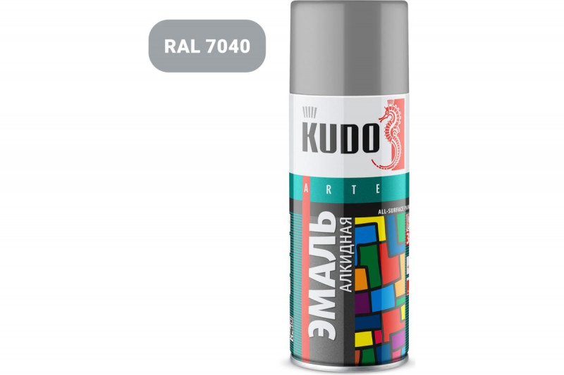 Универсальная эмаль KUDO аэрозоль, серая, 520 мл KU-1018 предназначена для окраски предварительно загрунтованных металлических и деревянных поверхностей. Аэрозольная краска легко наносится на труднодоступные места. Образует долговечное покрытие с хорошей укрывистостью, атмосферостойкостью, превосходной адгезией к окрашиваемой поверхности.