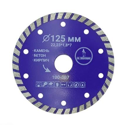 Характеристики товара Диск алмазный турбо отрезной 125*22,23мм Mr. ЭКОНОМИК, 100-007